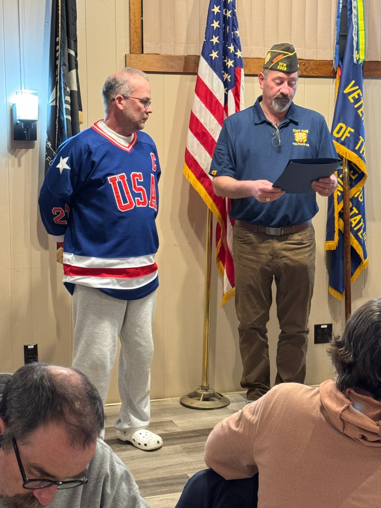 At last weeks monthly meeting, Bux-Mont 920 President Sean Geackle was awarded a Letter of Appreciation from Telford VFW’s Commander Ronald J. Joyce along with Quartermaster (and Bux-Mont 920 Trustee) Bryan Jefferies. This was in recognition of Bux-Mont 920’s participation in Telford VFW’s year long project with the Coatesville VA hospital for Homeless Veterans.