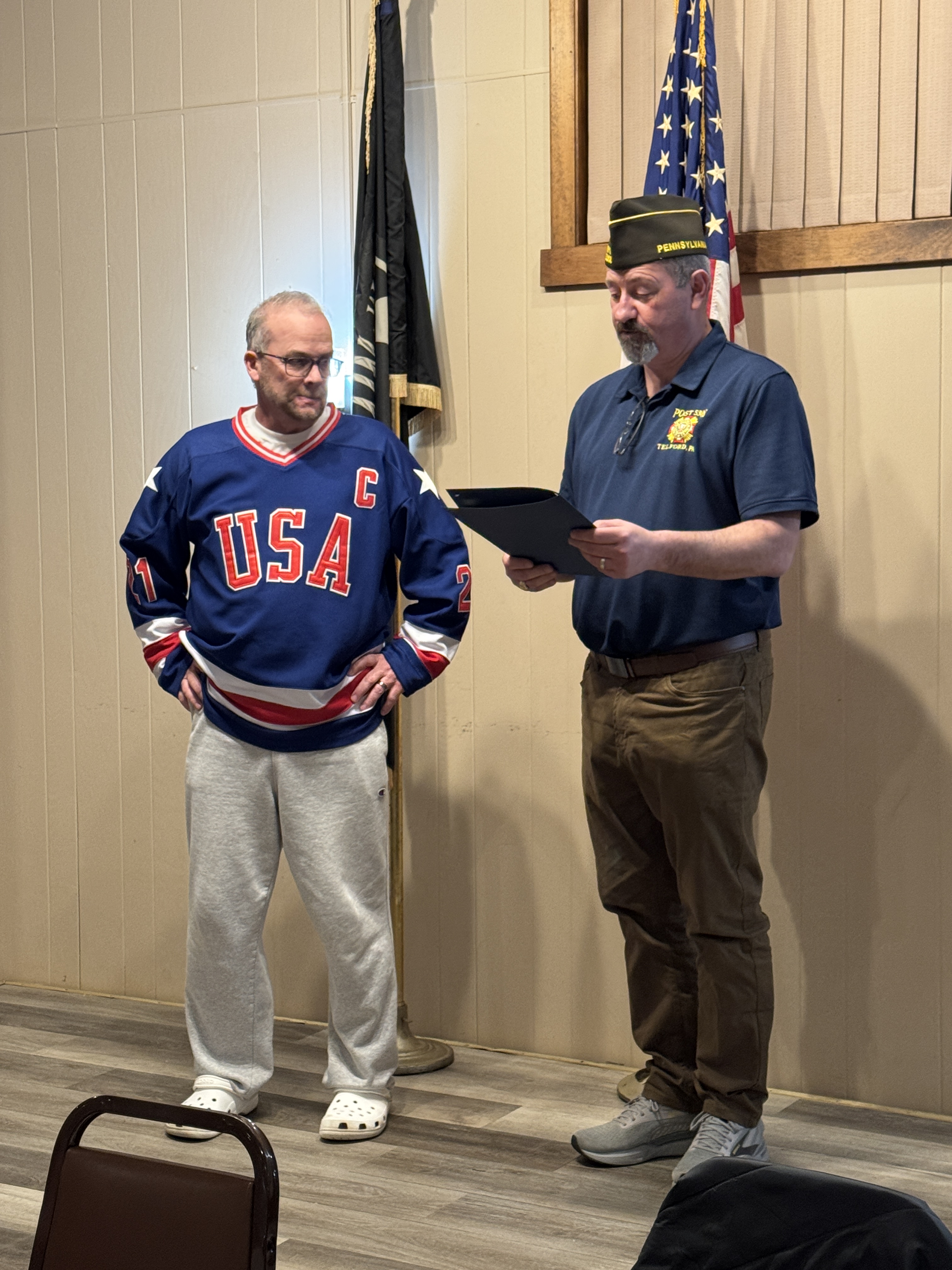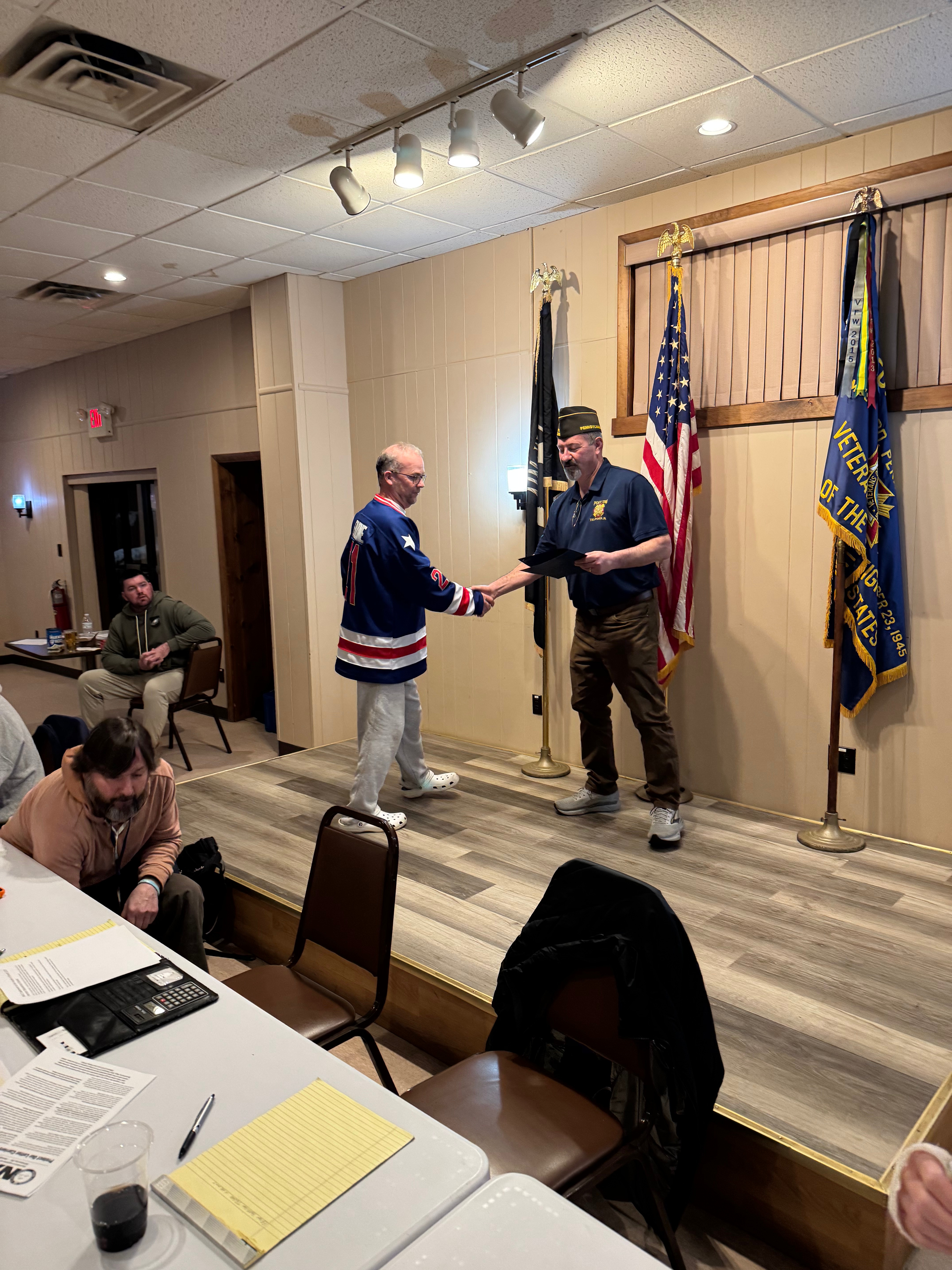 At last weeks monthly meeting, Bux-Mont 920 President Sean Geackle was awarded a Letter of Appreciation from Telford VFW’s Commander Ronald J. Joyce along with Quartermaster (and Bux-Mont 920 Trustee) Bryan Jefferies. This was in recognition of Bux-Mont 920’s participation in Telford VFW’s year long project with the Coatesville VA hospital for Homeless Veterans.